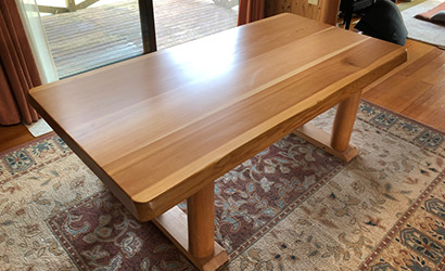 古くて天板の汚れやしみが目立ち、おまけに幅が狭くて使い勝手が悪かったダイニングテーブルを希望通りのサイズできれいに仕上げて貰いました。これで、子供や孫たちが帰省した時に一つのテーブルを囲んで楽しく食事をすることができます。