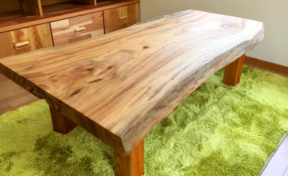 実家の倉庫の外で、雨ざらし日ざらしになってた楠の1枚板を何とか有効利用できないかと相談したところ、立派なテーブルに仕上げて頂きました。おかげで、世界に一つしかない自慢の家具になり感動してます。